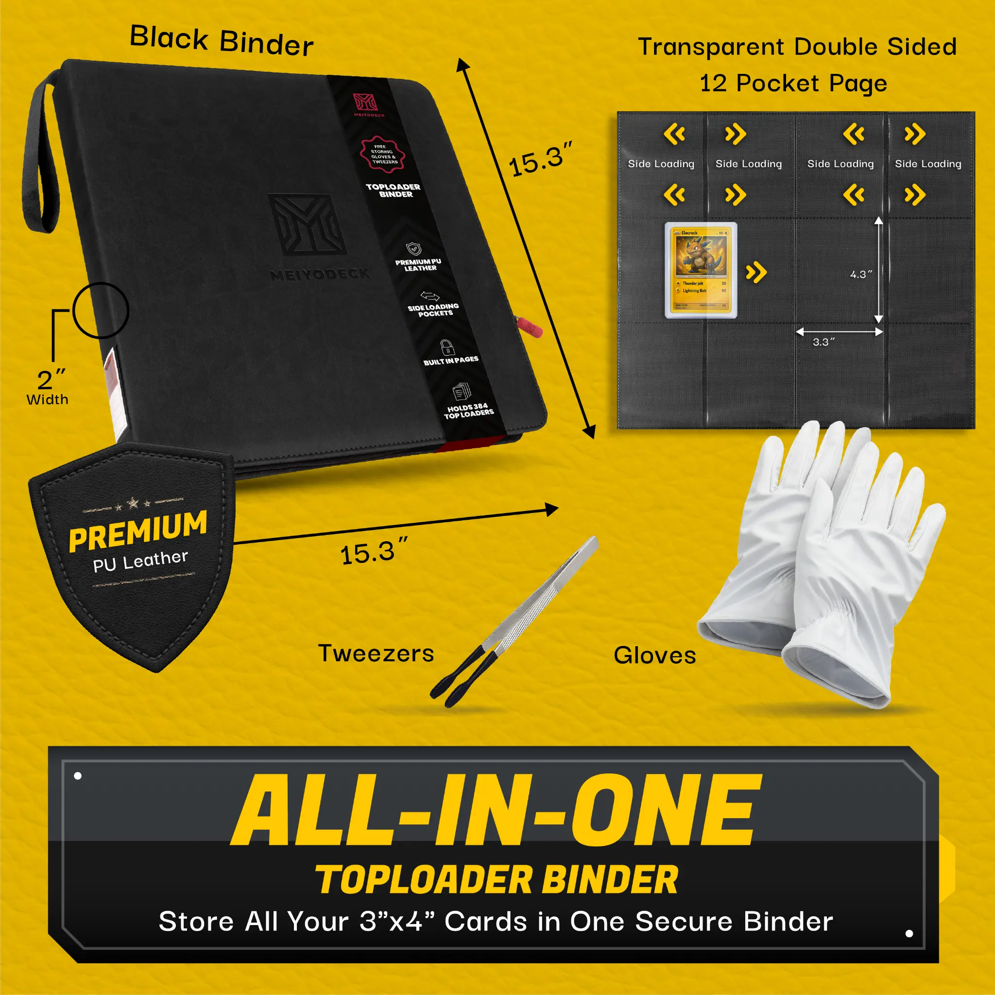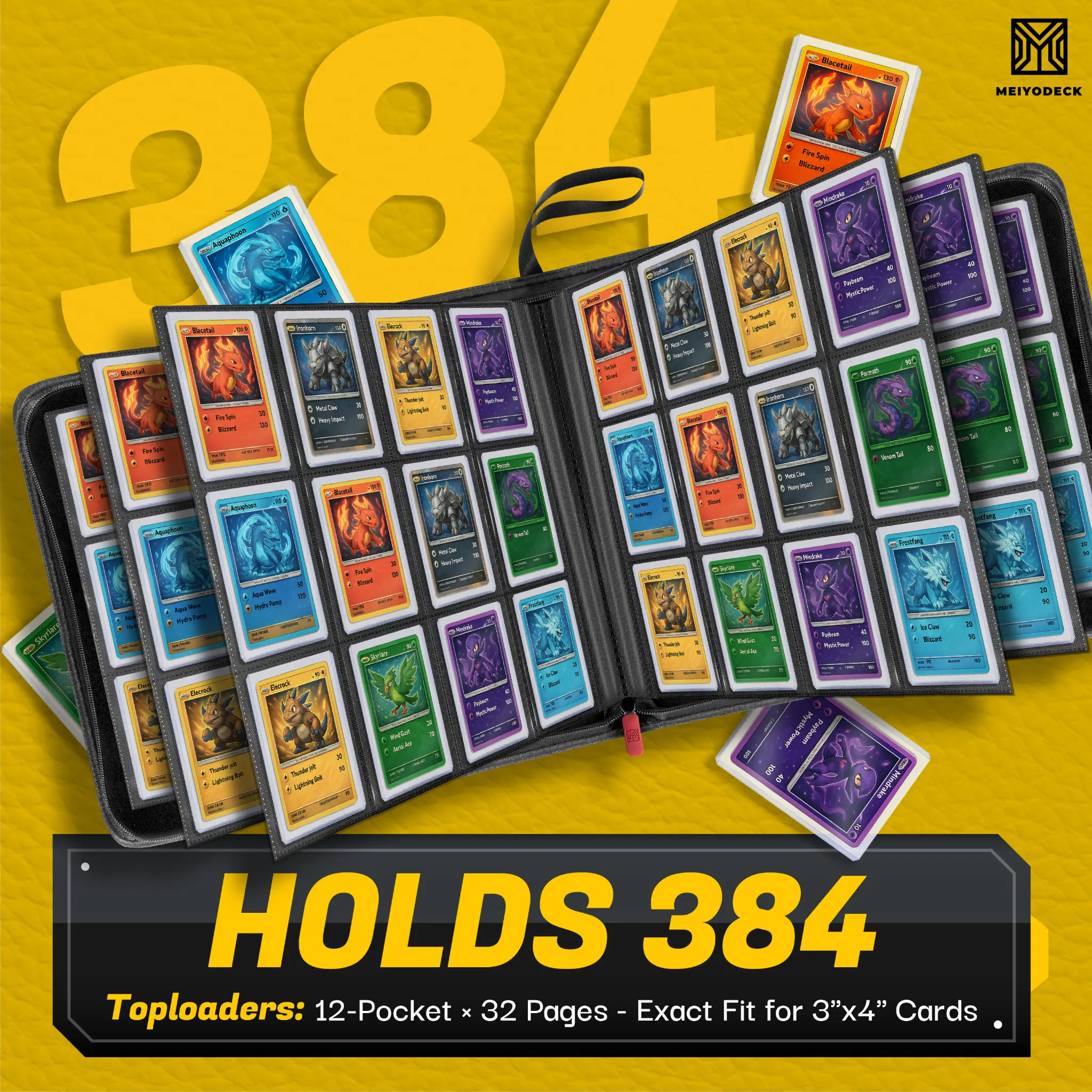 Holds 384 toploaders — built for the collector who refuses to leave a single card behind.